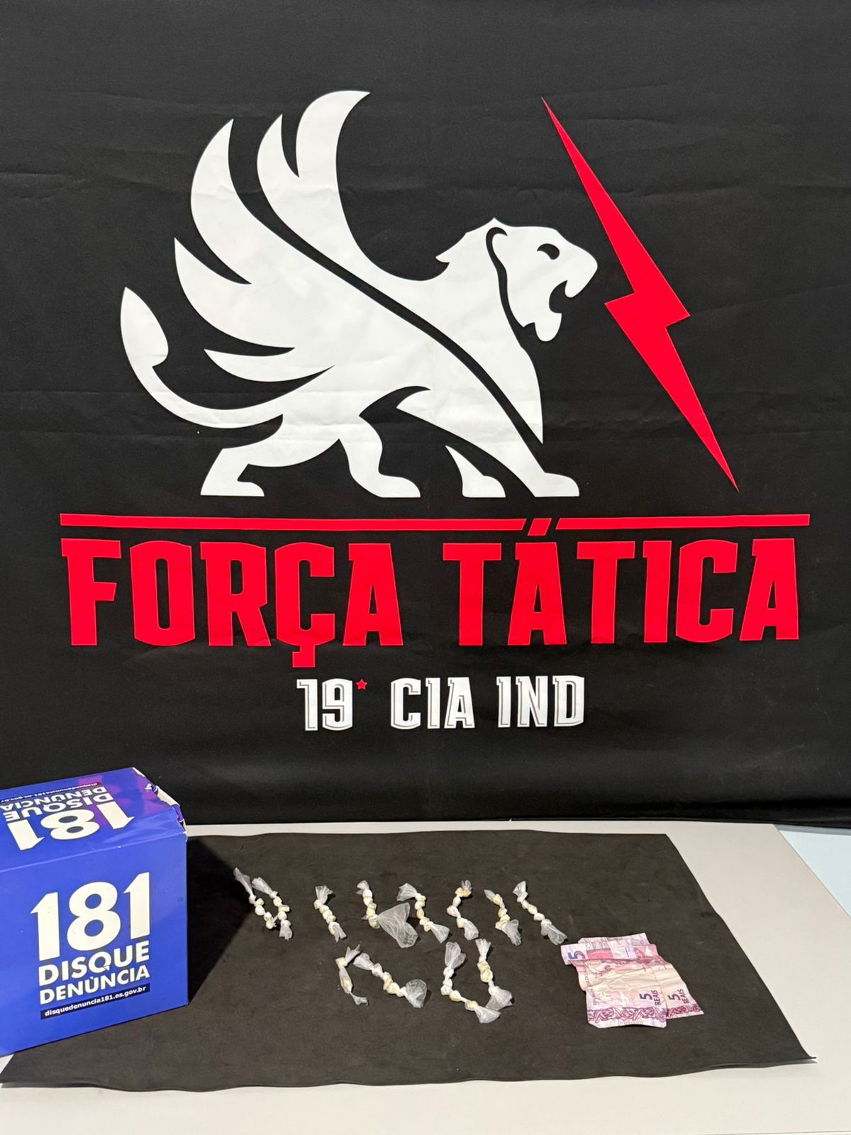 Com base na confirmação visual do crime, a equipe da Radiopatrulha realizou a abordagem tática ao veículo na Avenida Vitória. Durante a revista no interior do automóvel, os policiais localizaram 13 buchas de maconha, um pino de cocaína e dinheiro em espécie, materializando a prática do tráfico.
