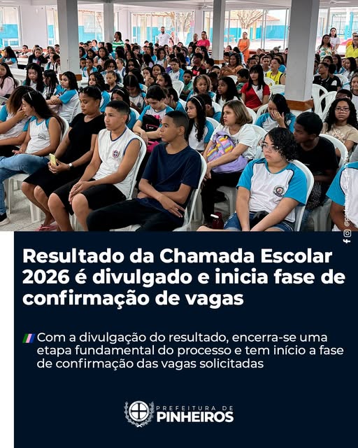 – A publicação marca um momento decisivo para estudantes e famílias pinheirenses, que passam a se organizar para o próximo ano letivo. Com a divulgação do resultado, encerra-se uma etapa fundamental do processo e tem início a fase de confirmação das vagas solicitadas.